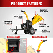 MechMaxx P4205 5-Inch Disc Wood Chipper – KOHLER Command PRO 429cc 14HP E-Start Gas Engine with Taillight & Towbar