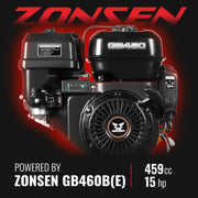 MechMaxx B150 6-Inch Drum Wood Chipper – ZONSEN 459cc 15HP Gas Engine with Electric Start & Taillight